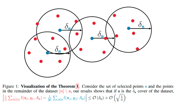 그리고 이 subset에 대한 average loss와 data points의 기하학적 구조를 통해 남아있는 data point와의 엄격한 경계를 제시?? ⇒ 그리고 이 bound를 최소화 하는 subset을 선택하기 위한 algorithm