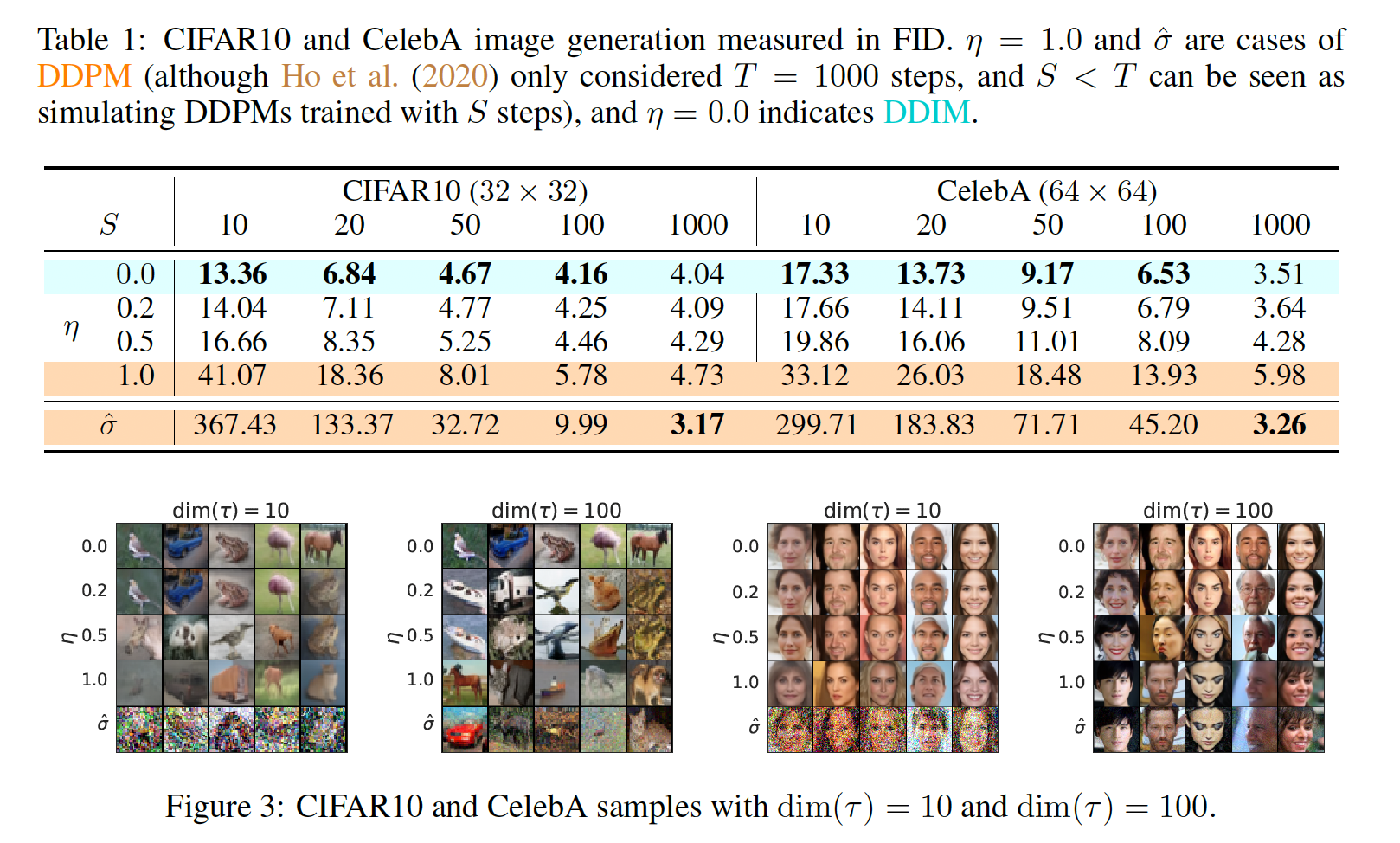 $\eta = 1$ ⇒ DDPM, $\eta = 0$ ⇒ DDIM